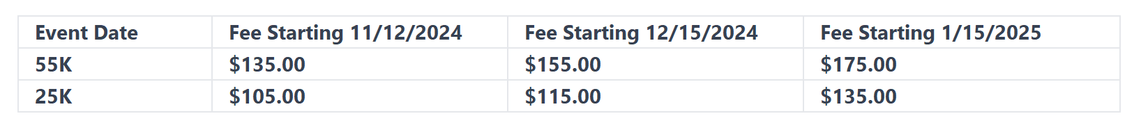 Please note: fees & taxes are added on when you register at Ultrasignup.